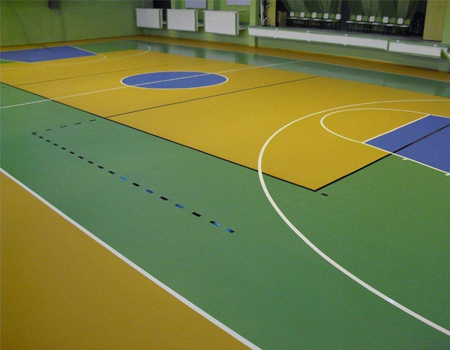 Çok Amaçlı Spor Salonu BASKETBOL- VOLEYBOL- HENTBOL ve BADMINTON sahaları Sentetik Zemin Kaplama malzemesi DESPOL POLİÜRETAN mamulü ISO 9001:2000 – ISO 14001 onaylı olup DIN Normlarına uygundur.